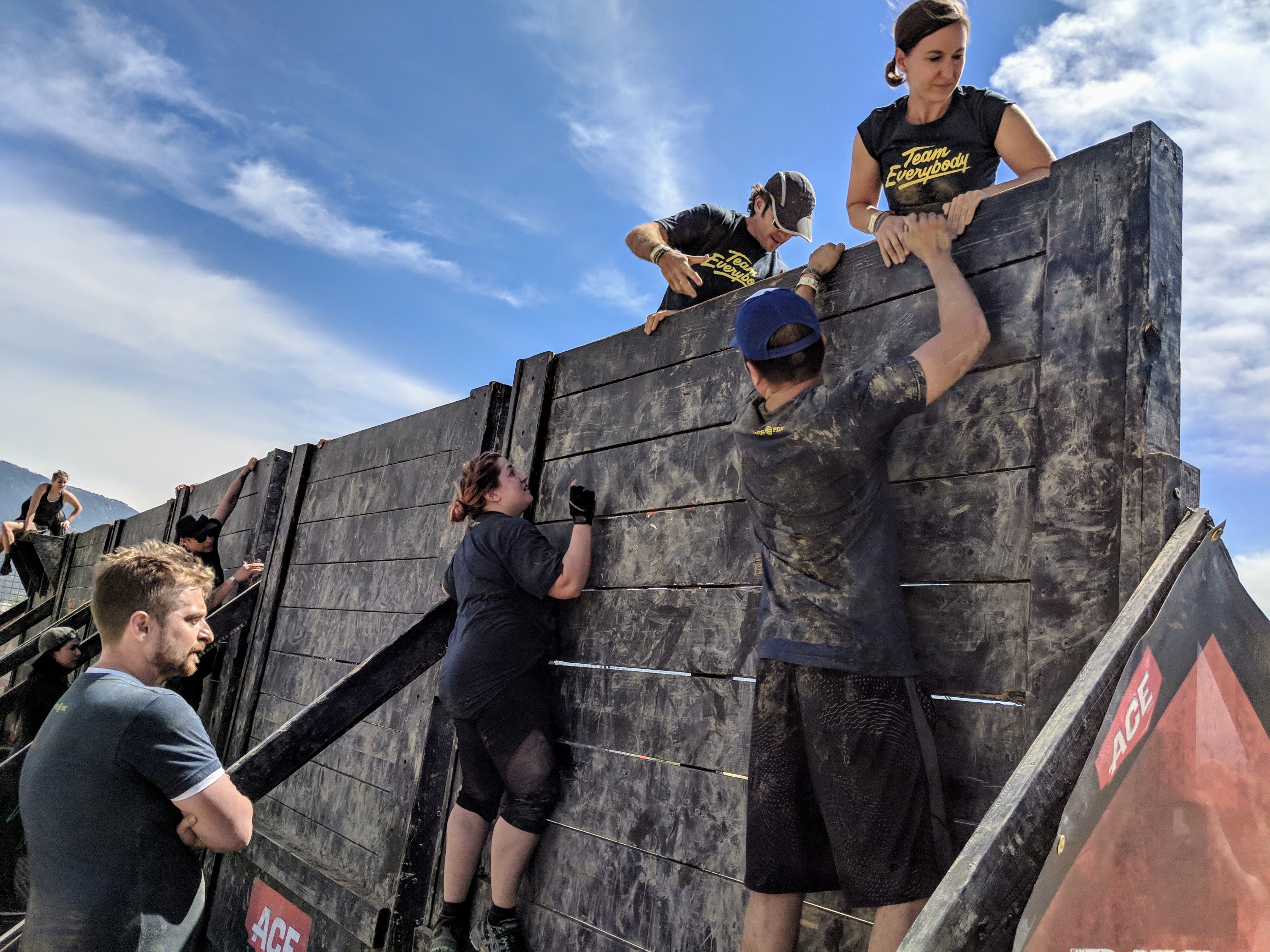 So, from the very beginning, this was about sticking together as a team. It was not a competition or a race, it was a chance to work together to get every team member through the obstacles. And we did! It was incredible! My team was amazing. It was awesome to witness the whole group come together to get all of us through the course. We were not the fastest team. In fact, we might have been nearly last in our heat to finish. But that’s not what it was about. Plus, I think we were having way more fun than most folks. To sum up – 10 out 10, would do again (but only with amazing humans like these!).